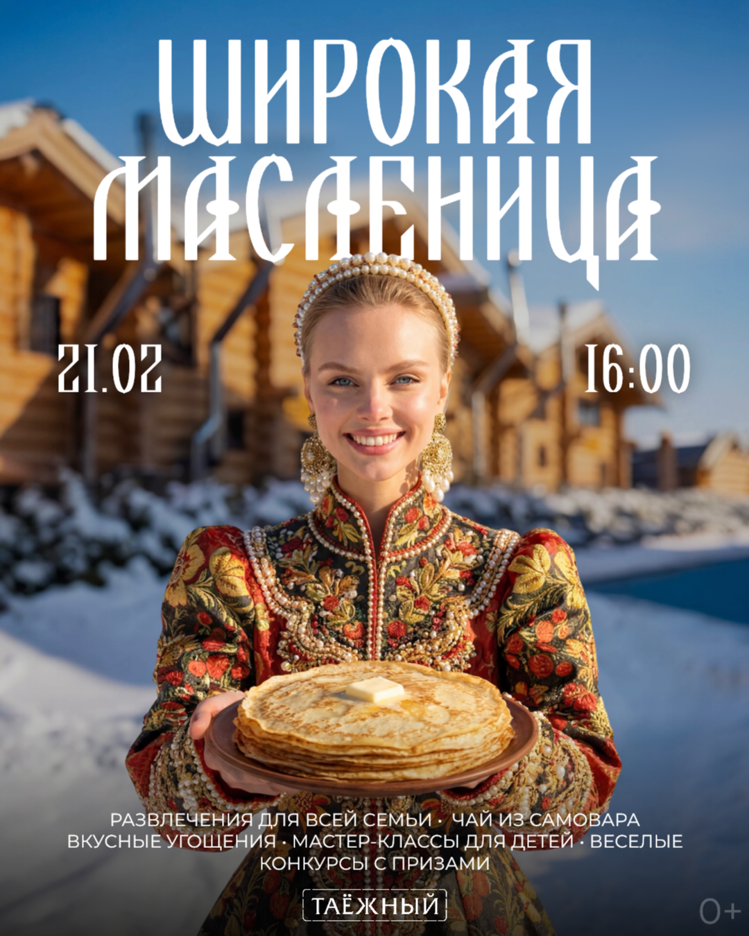 Приходите всей семьёй отмечать Масленицу в парк‑отеле «Таёжный» — будет душевно и ярко, во всей красе русских традиций!